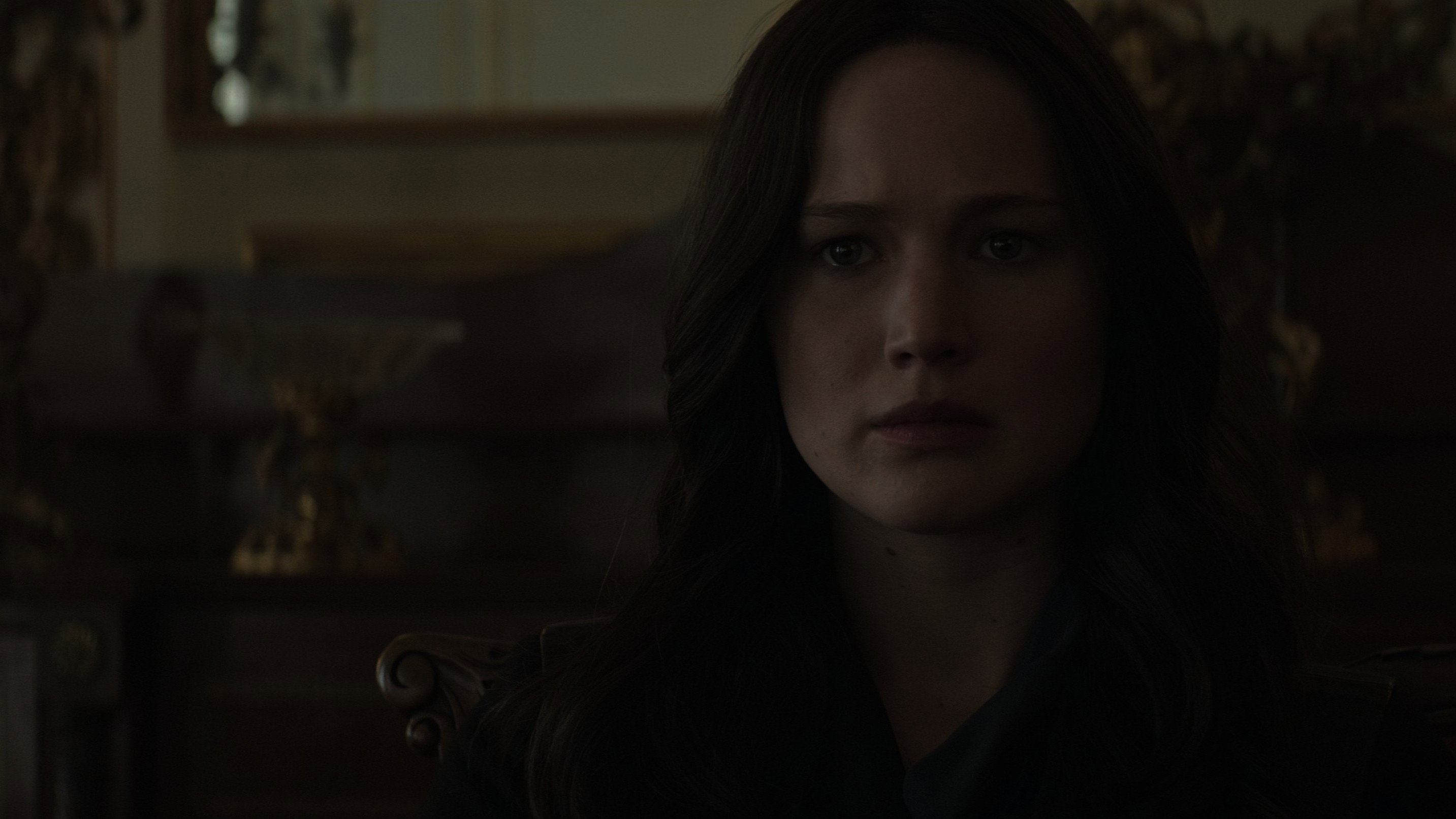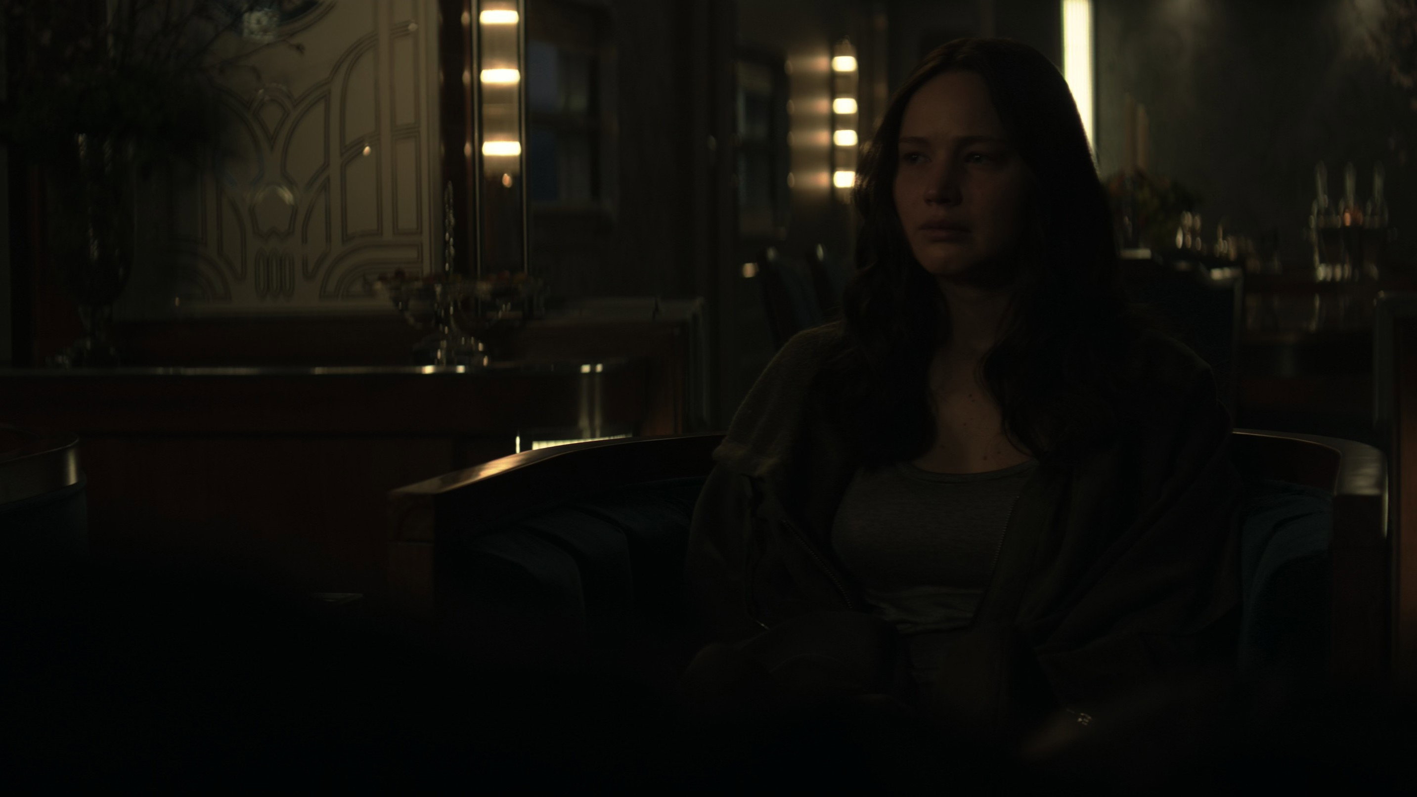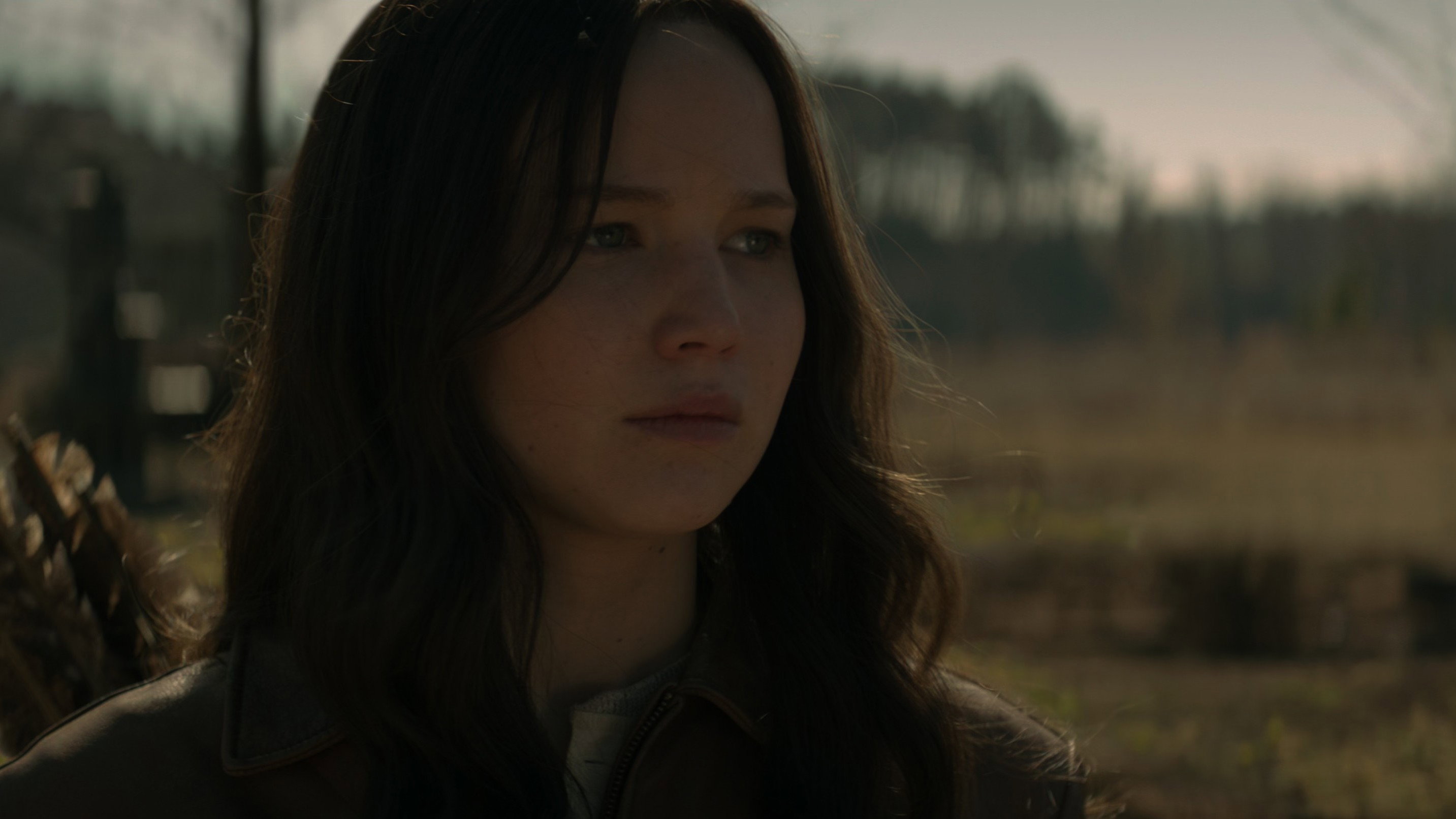 • Towards the end of the film, when Katniss and Haymitch are talking, close-ups show that Katniss’s costume has a large copper slider on the zipper, but this slider is not present in wide shots.