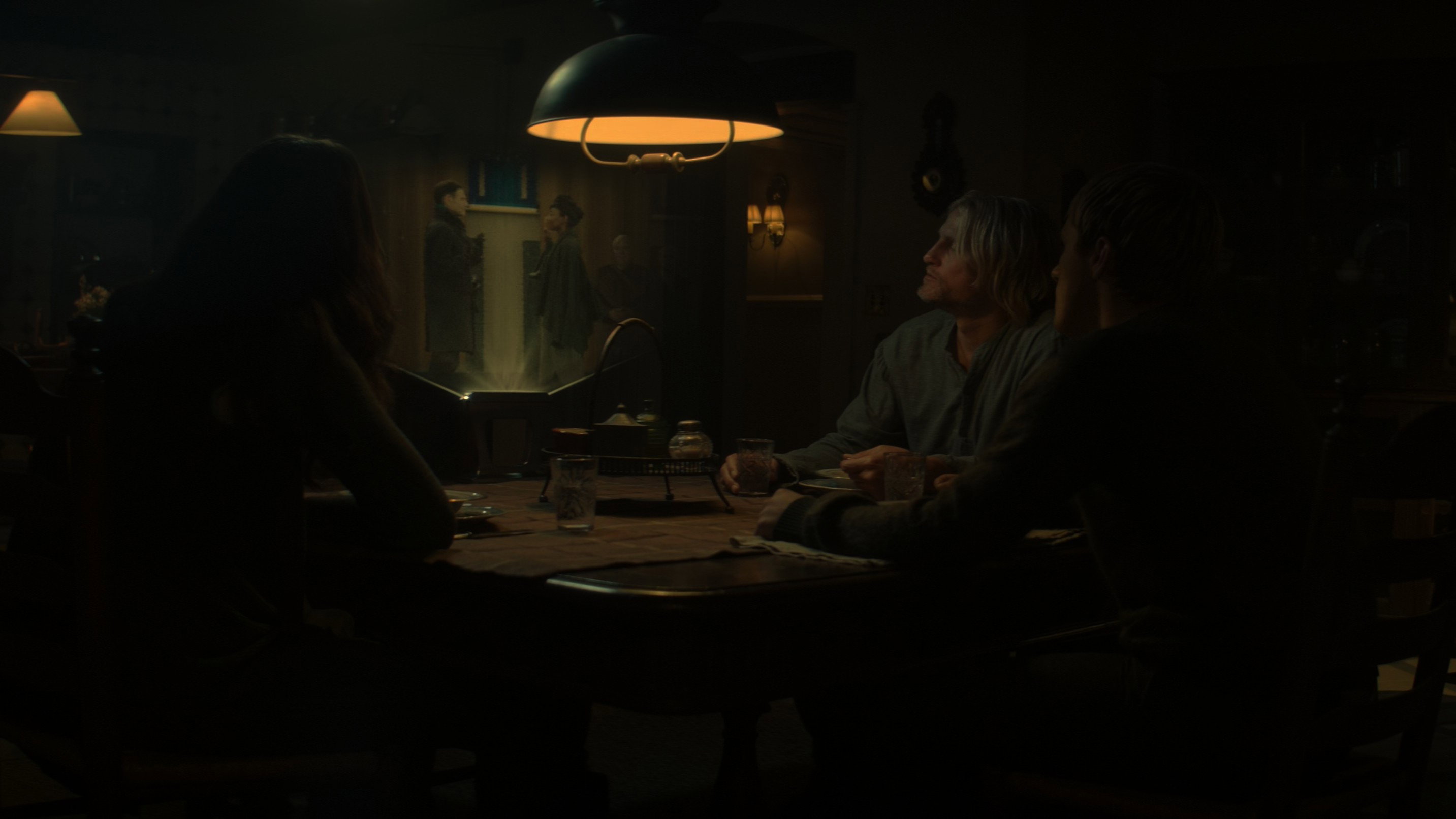 • In the scene where the victors are seated around a round table, a bowl from the film *The Hunger Games* (2012) can be seen behind Katniss. Head Gamemaker Seneca Crane is shown next to this bowl, containing berries, in the penultimate scene of the first film in the franchise.