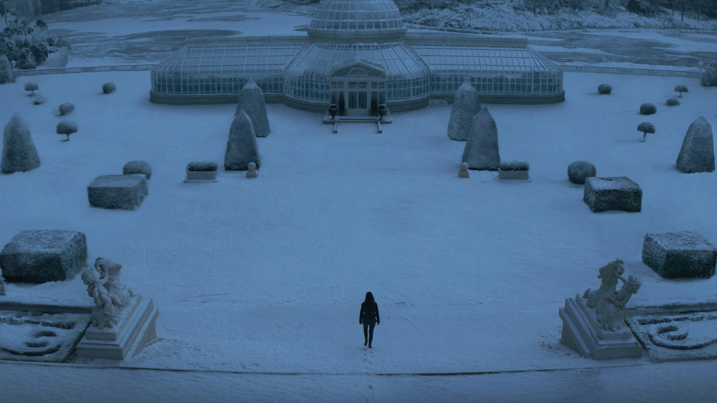 • President Snow's rose garden is shown inside a greenhouse, whereas in the film *The Hunger Games* (2012) it was located outdoors, away from the Capitol.
