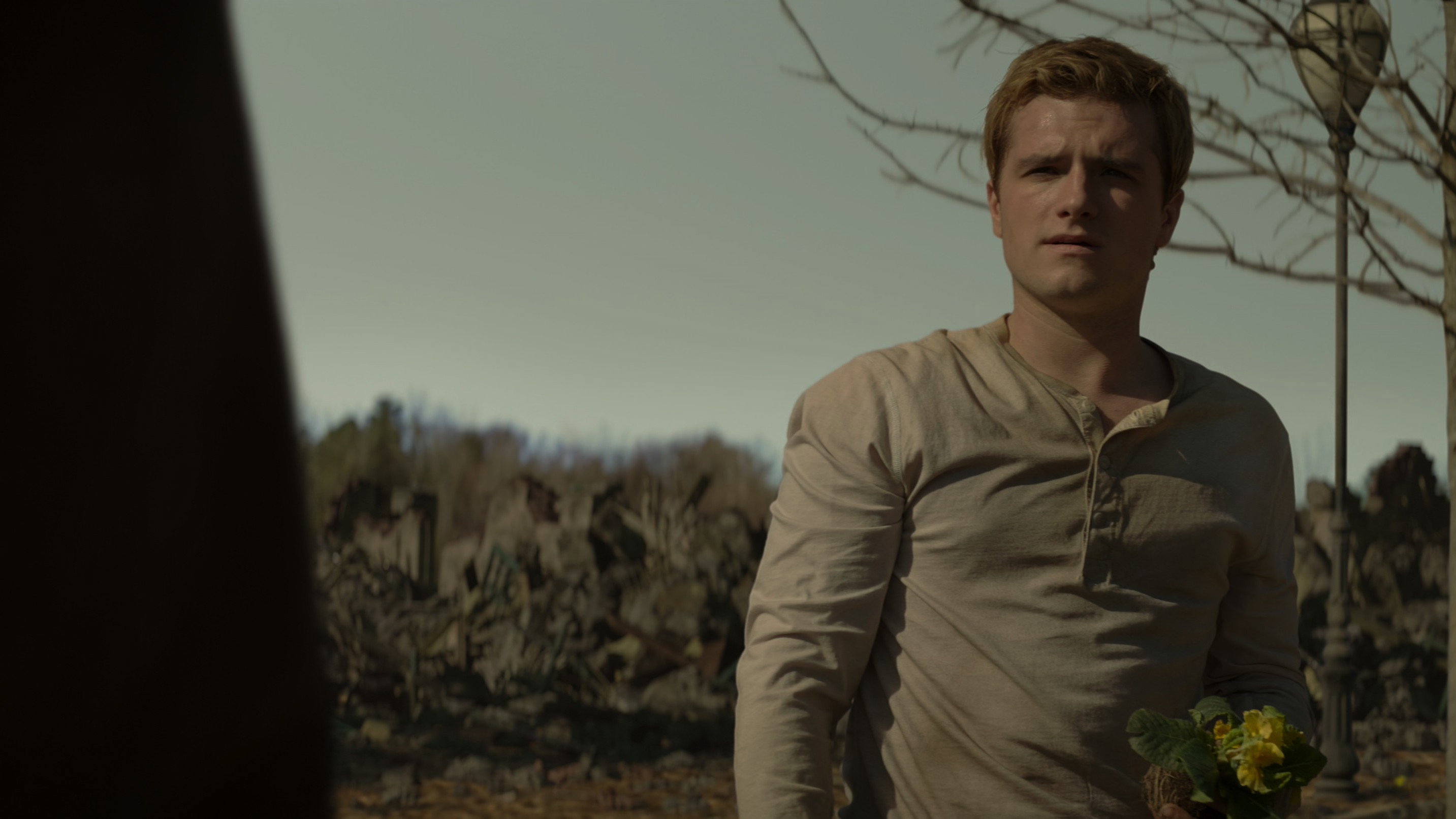 • In the epilogue, Josh Hutcherson, who played Peeta Mellark, appears on screen wearing a wig for the first time. For the filming of all the films in the "Hunger Games" franchise, Hutcherson dyed his hair blonde, which he did not enjoy at all. The epilogue of "The Hunger Games: Mockingjay – Part 2" was filmed several months after the completion of filming for the film itself. Since the filming of the epilogue was only supposed to take a couple of days, the actor decided not to dye his hair, but to wear a wig.