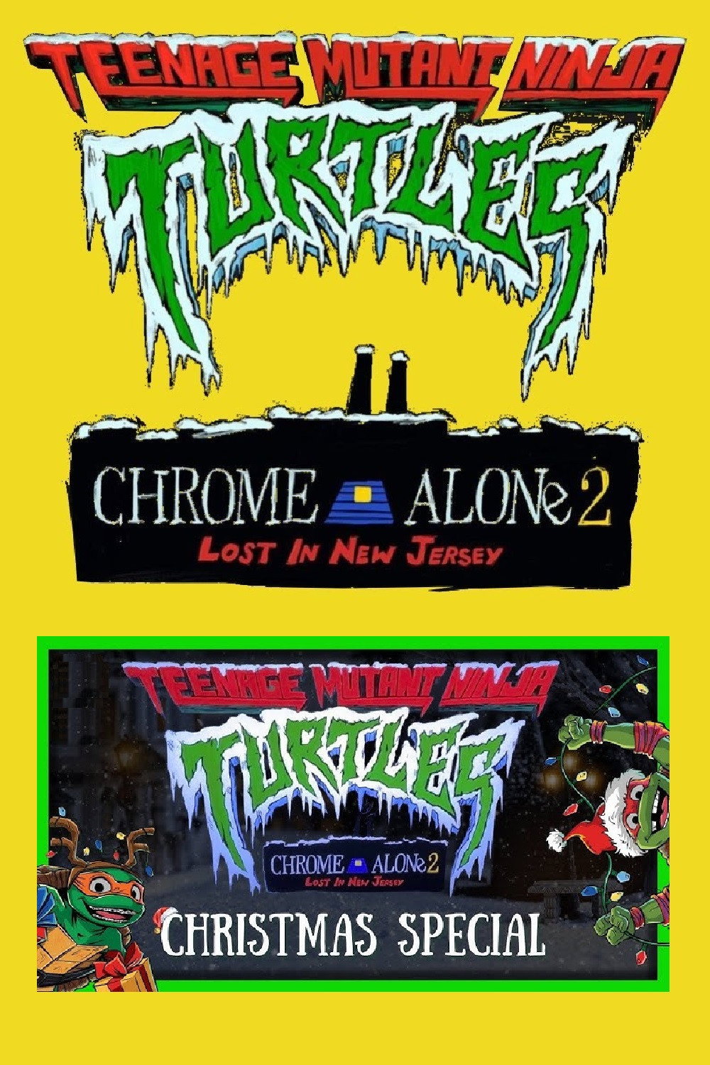 Lots of posters, covers and wallpapers for the movie "Teenage Mutant Ninja Turtles: Chrome Alone 2 - Lost in New Jersey"