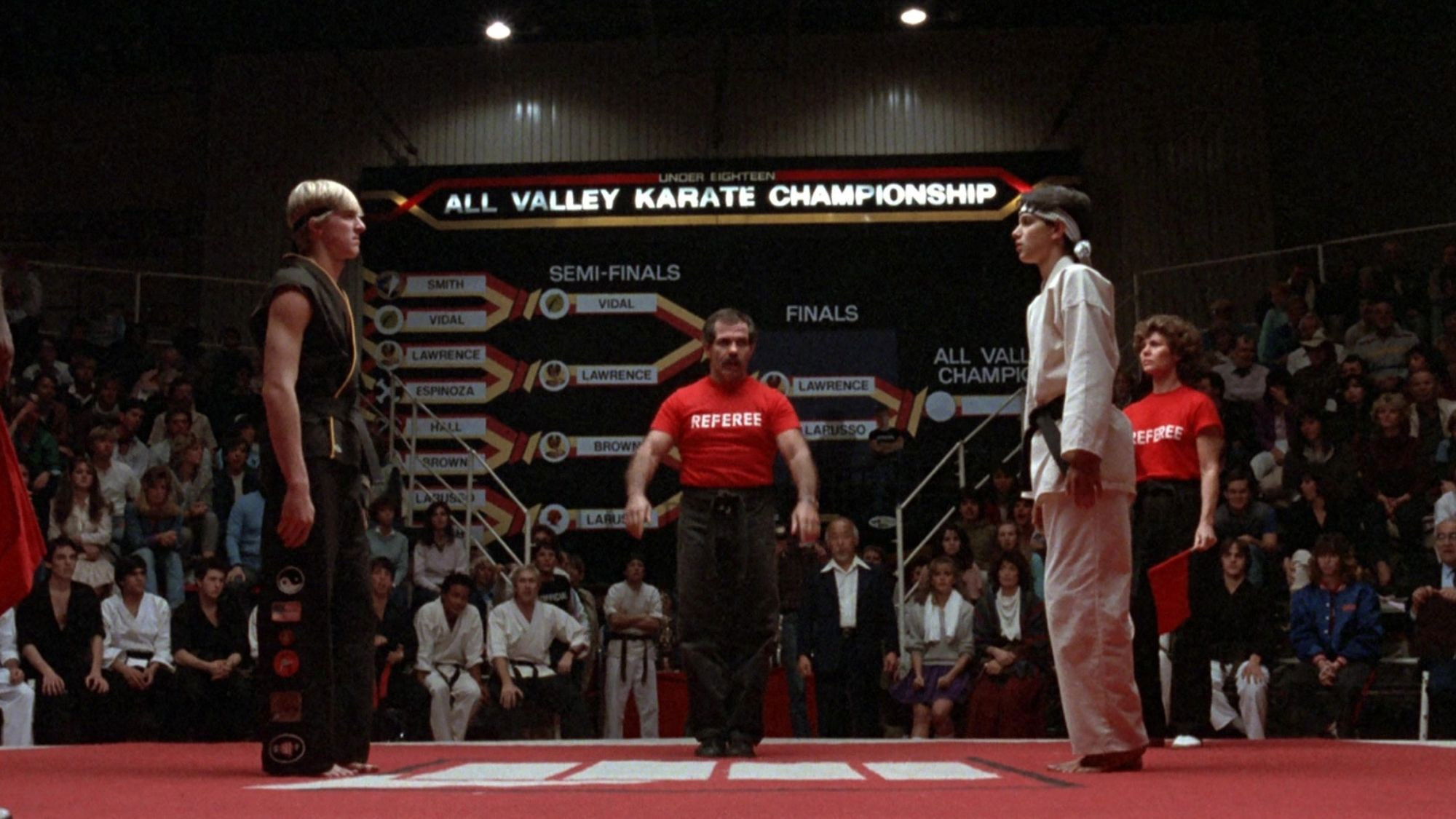 • Pat Johnson, a karate master and former student of Chuck Norris, refereed the final match. He was also the fight choreographer for the film and its sequels and has repeatedly worked as a karate instructor for many Hollywood stars.