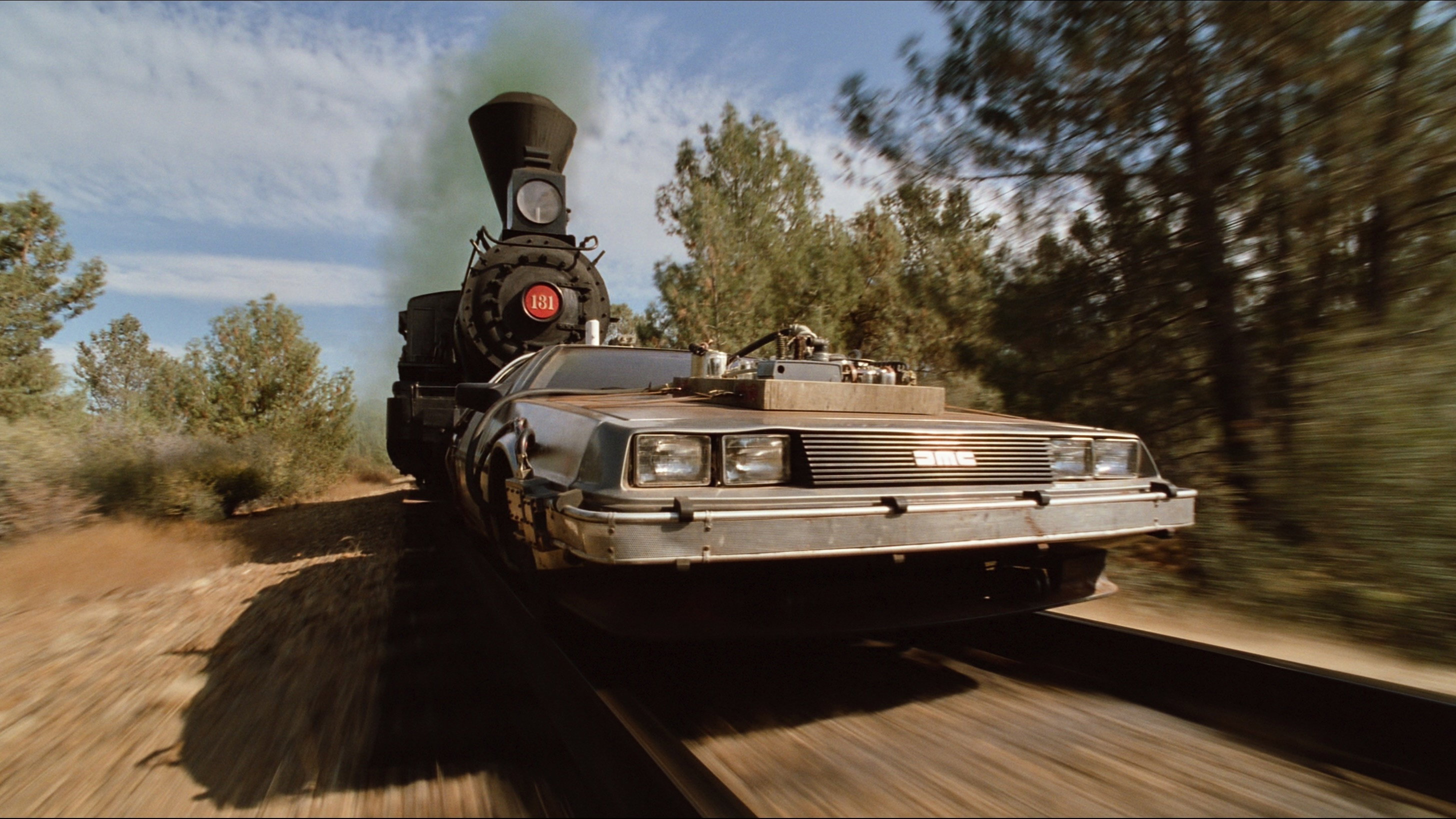 • The scenes where the locomotive pushed the DeLorean were particularly dangerous: there was no guarantee that the DeLorean would not derail or that the train would not run over it. Therefore, all the profile shots showing Michael J. Fox in the car were filmed in reverse: the locomotive simply pulled the DeLorean backwards.