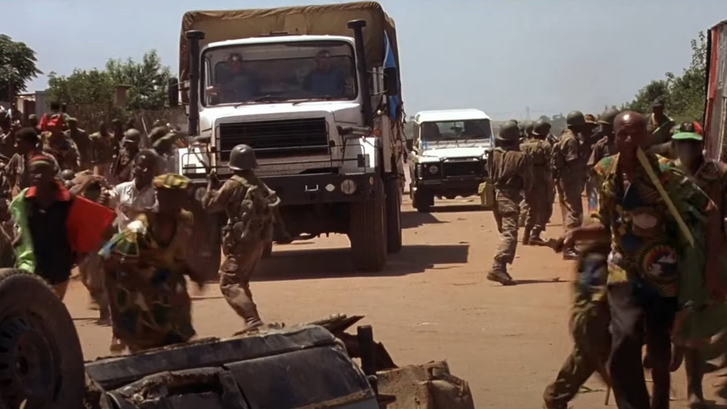 • There is a moment in the film where the radio broadcasts that refugees on a bus will be taken to Congo, clearly referring to the modern Democratic Republic of Congo, but at that time (1994) it was still called Zaire.