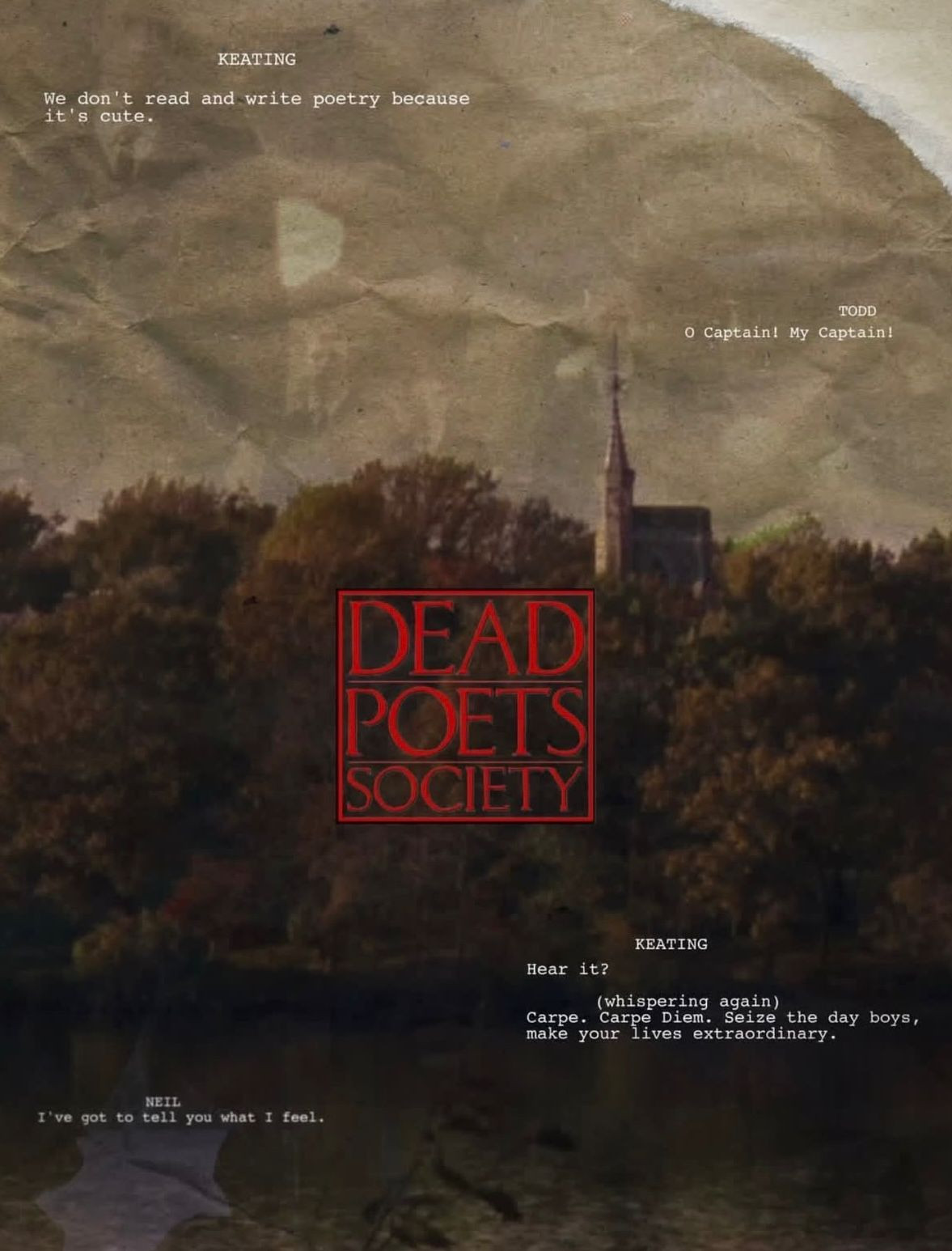 Lots of posters, covers and wallpapers for the movie "Dead Poets Society"