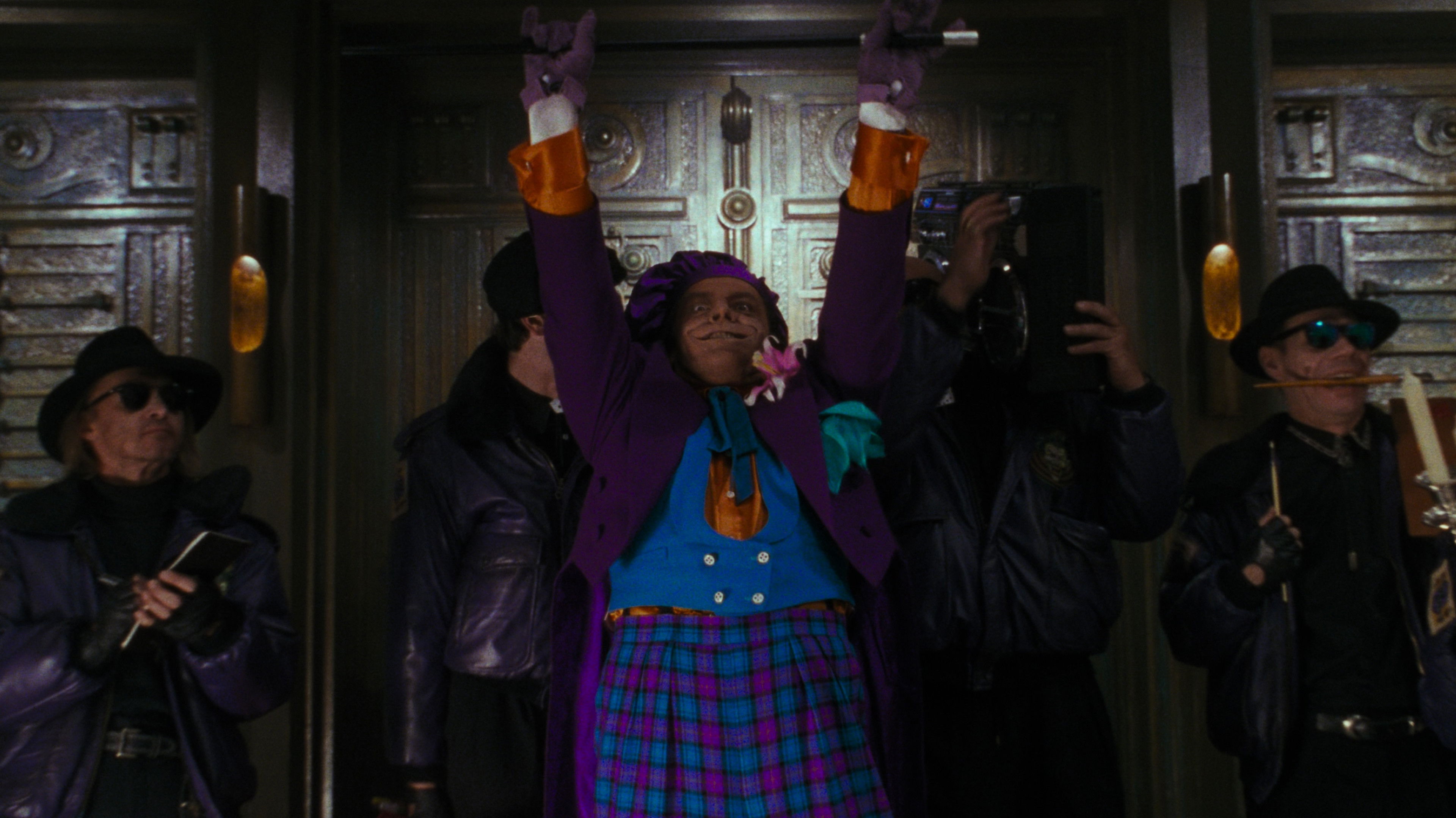 • Tim Burton wanted Bob Kane to play an episodic role in this film, but the artist was unable to participate in the shooting. However, he drew a caricature of a clerk with a bat head, which was used in the film.