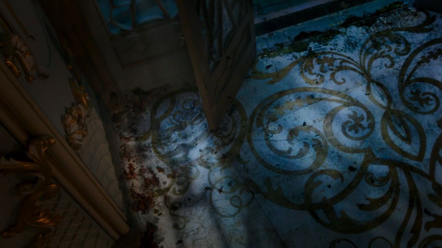 • Half of the ballroom in the Beast’s castle, which covers 1115 square meters, is made of artificial marble, and its design is based on the pattern of the ceiling in the Benedictine monastery located in the Braunau-in-Ror abbey in Germany. Ten glass chandeliers illuminating the ballroom, each measuring 2x4 meters, were constructed based on real chandeliers from the French royal palace of Versailles, covered with glaze imitating frost, and draped with fabric.