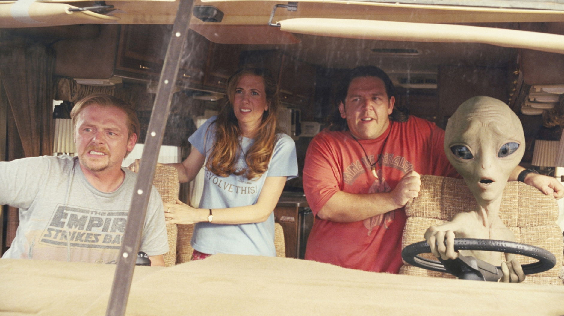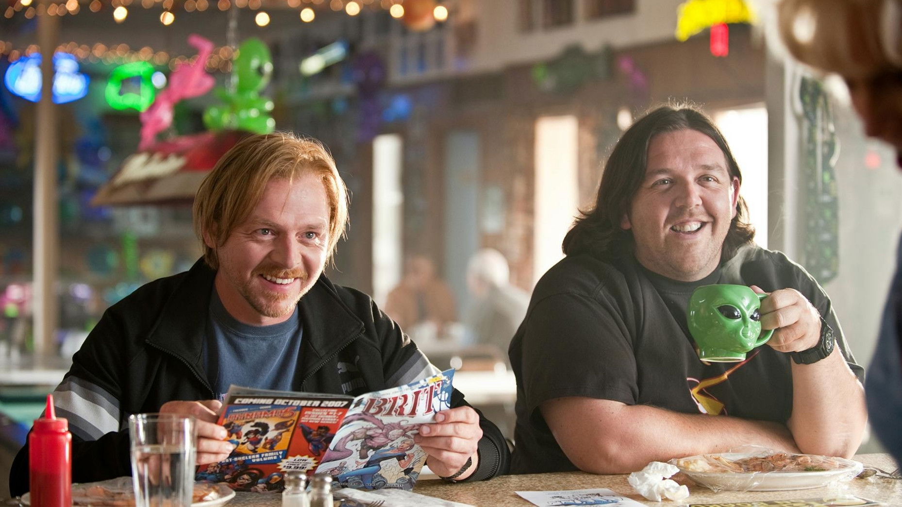 • Simon Pegg and Nick Frost wrote the screenplay for this film and starred in it themselves as a testament to their love of classic science fiction, specifically the films 'Close Encounters of the Third Kind' (1977) and 'E.T. the Extra-Terrestrial' (1982) by Steven Spielberg. Upon learning of their decision, Spielberg was very pleased and offered his own participation in the project, for example, in a cameo role.