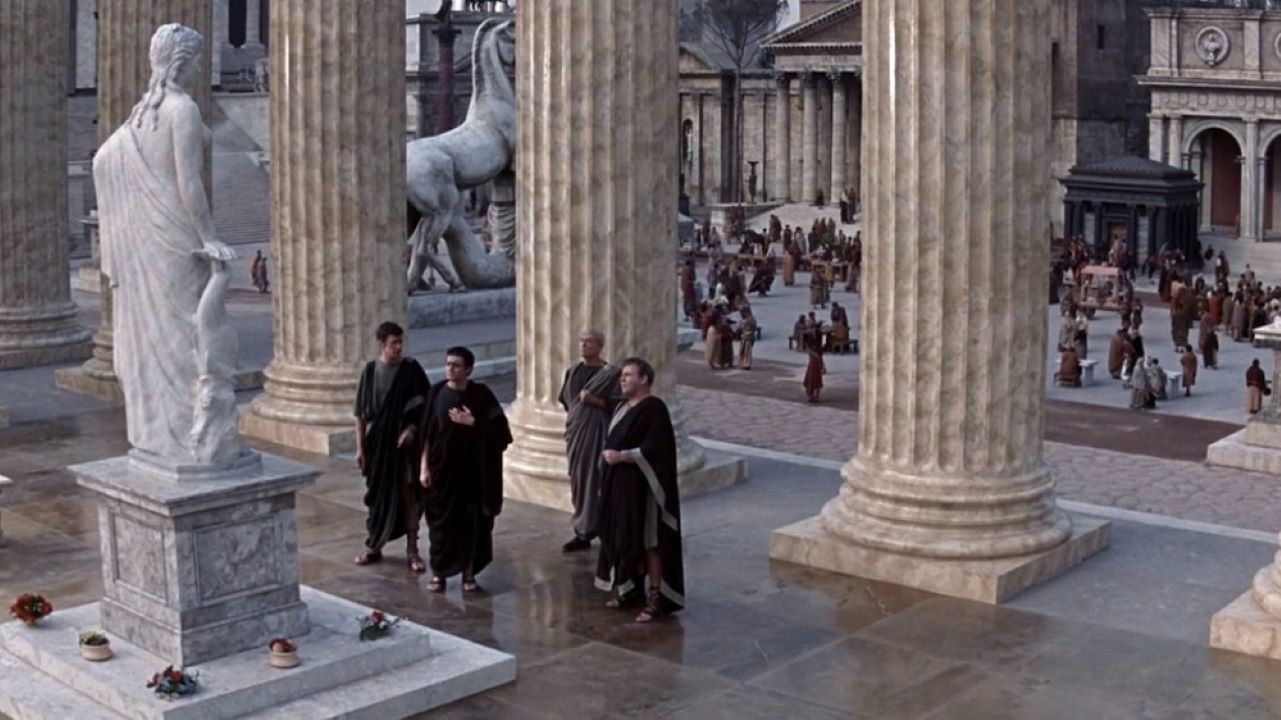 • Individual episodes of the Battle of Pharsalus were filmed in Spain (near the town of Almería) and later near London in February 1963. Originally, the scene was intended to logically unite the two main characters. Caesar was supposed to meet with Antony after the battle, but Richard Burton was already committed to another film and had to be replaced with Rufio (Martin Landau). A key moment of the film lost its message. In fact, the battle itself is absent from the final edited version – due to the rush, nothing coherent could be filmed and assembled, although around $500,000 was spent solely on its staging. The viewer only sees the smoke from a funeral pyre over the field of the finished battle. Considering all of Zanuck's revisions, the final running time of the film for release was approximately 248 minutes. Mankiewicz met this decision with deep disappointment, believing that the film should have been around 6 hours long and many of his ideas were lost. Hume Cronyn and Roddy McDowall also maintained that their best scenes were cut during editing.