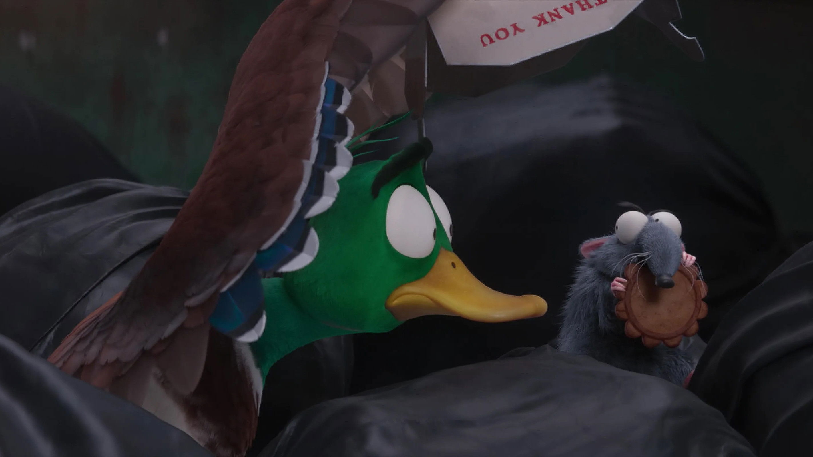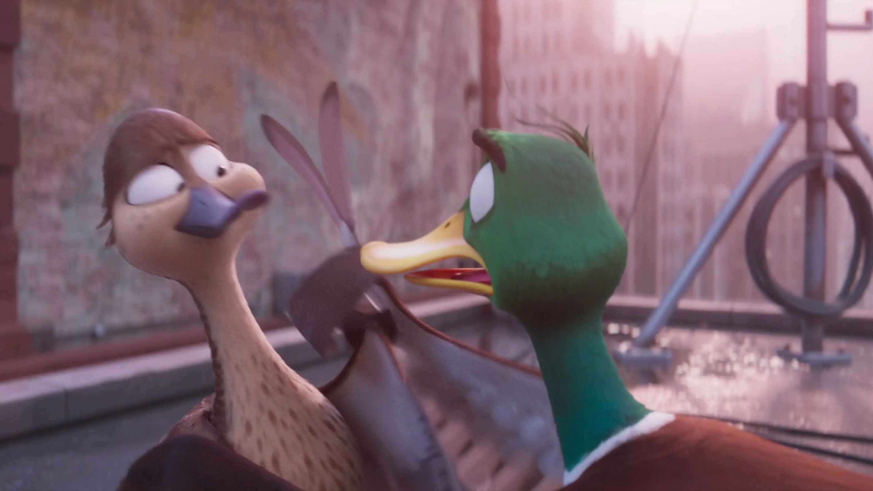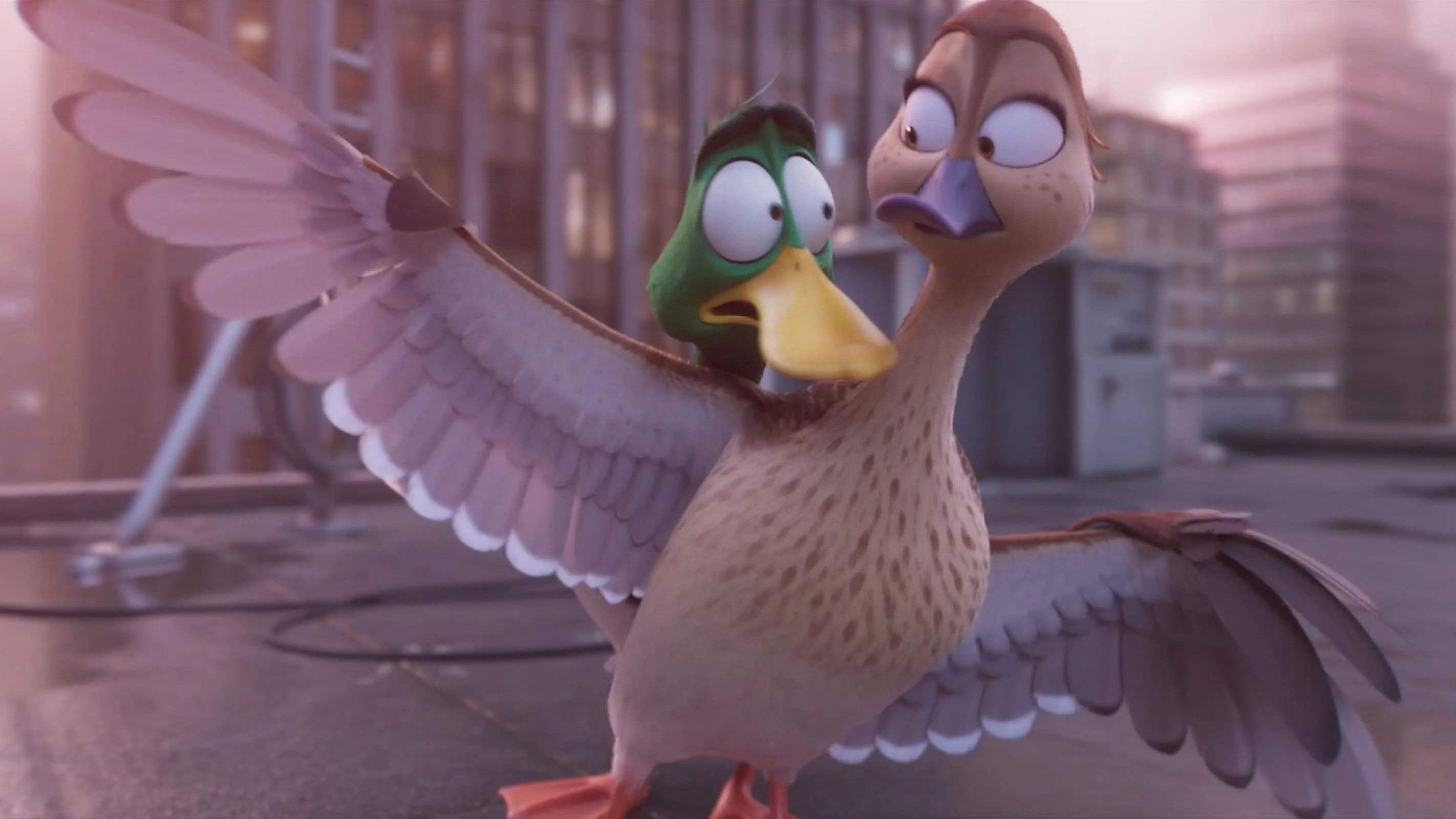 • One of the balloons that the family of mallards passes by features a unicorn from the “Despicable Me” franchise.