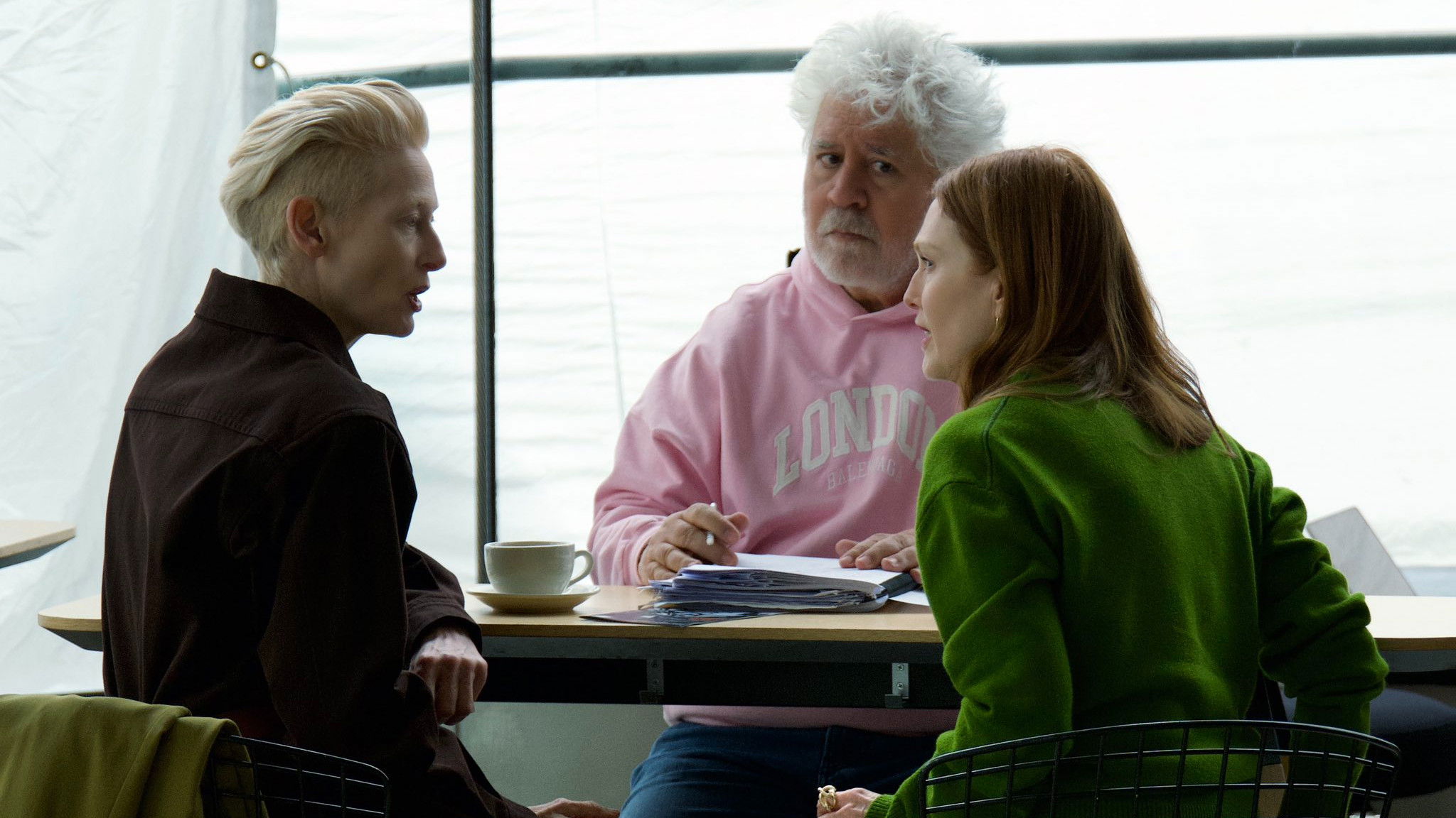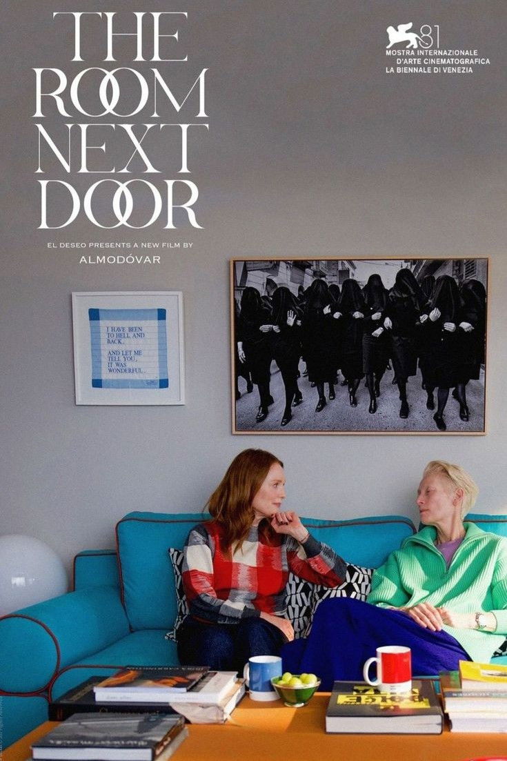 Lots of posters, covers and wallpapers for the movie "The Room Next Door"
