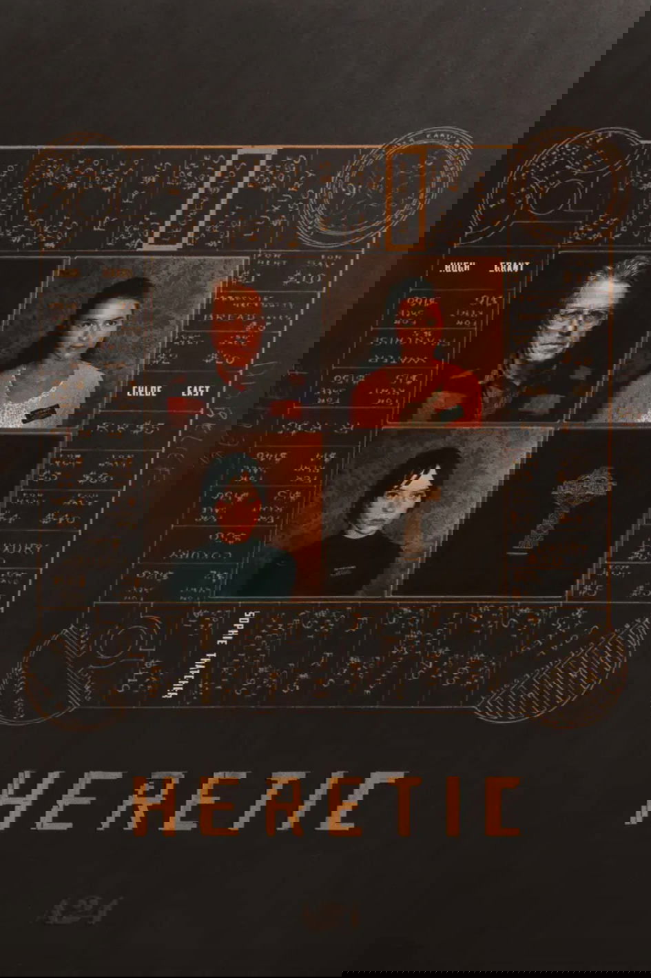 Lots of posters, covers and wallpapers for the movie "Heretic"
