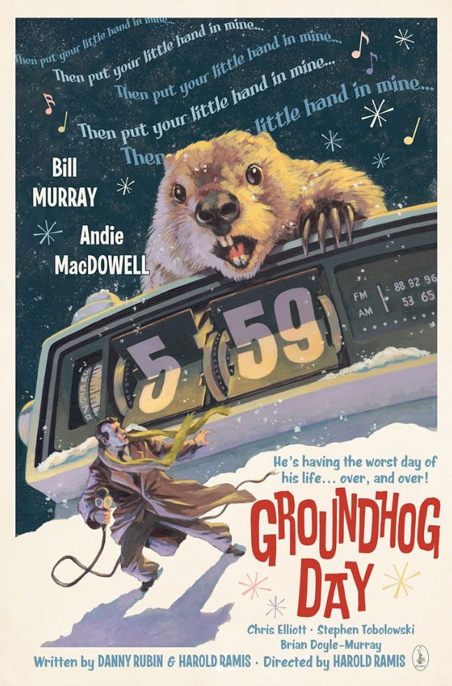 Lots of posters, covers and wallpapers for the movie "Groundhog Day"