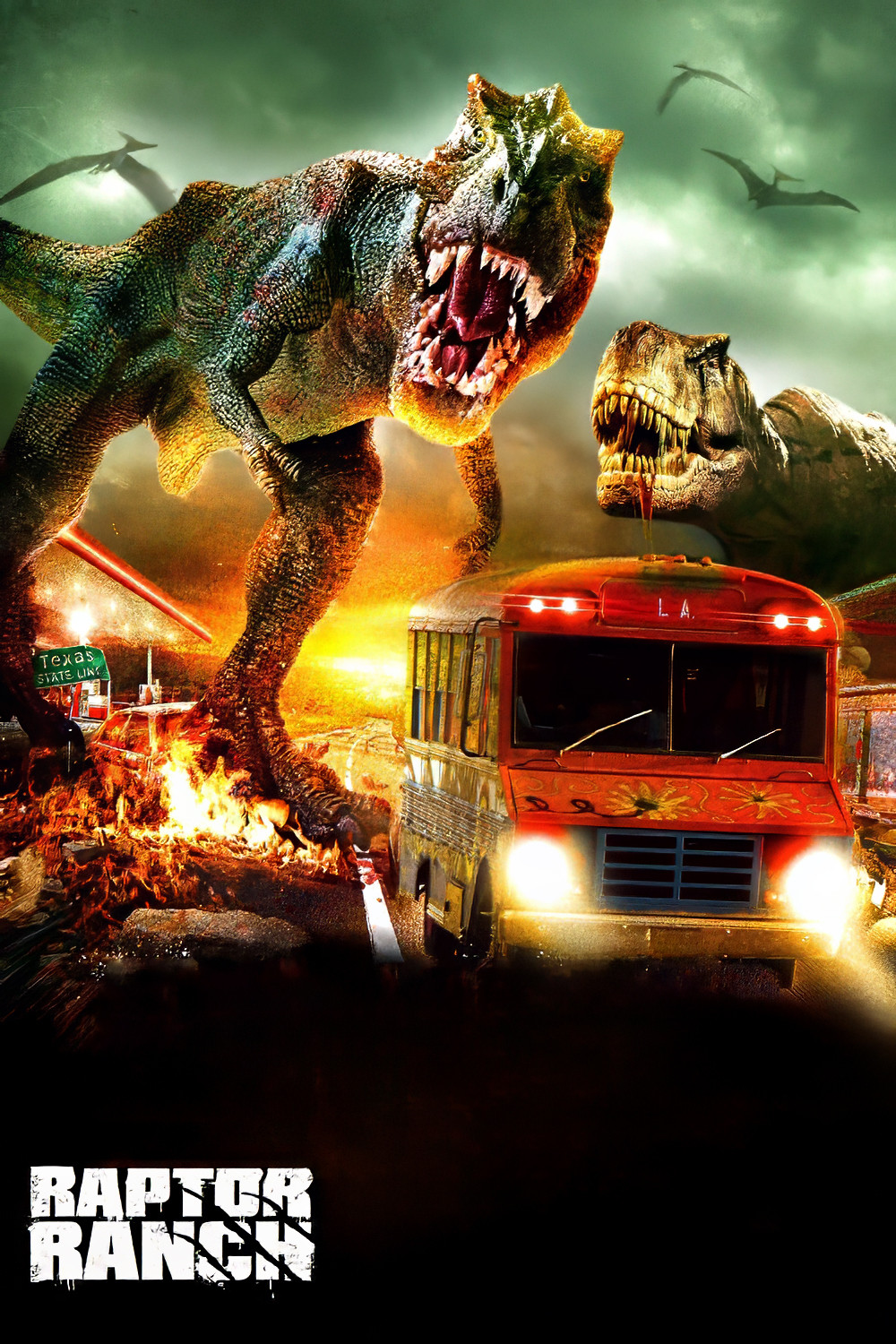 Lots of posters, covers and wallpapers for the movie "Raptor Ranch"