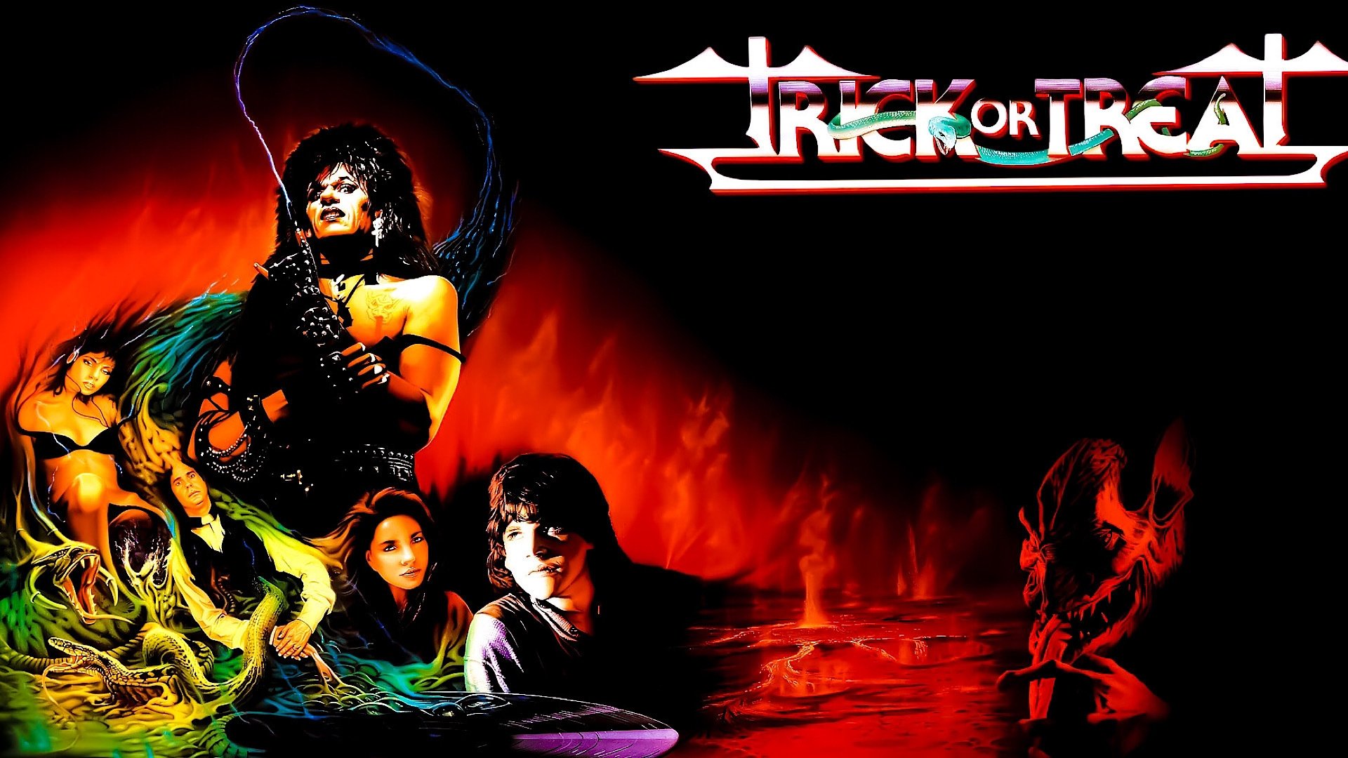 Lots of posters, covers and wallpapers for the movie "Trick or Treat"