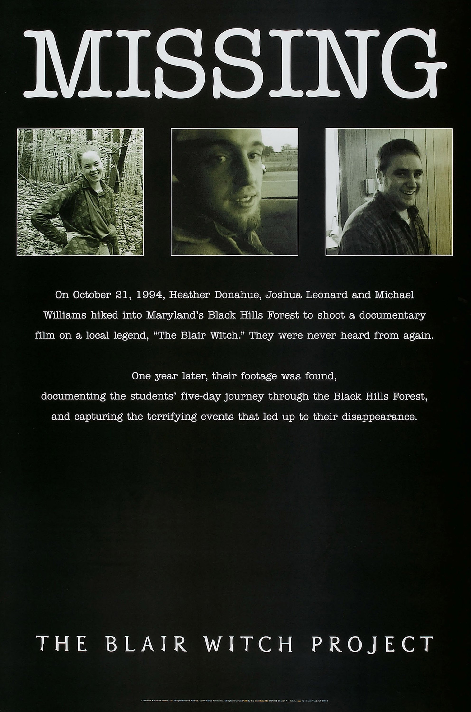 Poster to the movie "The Blair Witch Project" #852812K 1500p