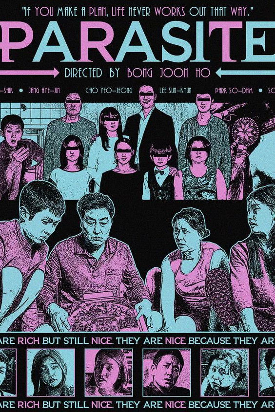Lots of posters, covers and wallpapers for the movie "Parasite"
