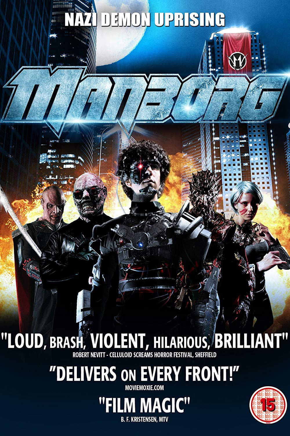 Lots of posters, covers and wallpapers for the movie "Manborg"
