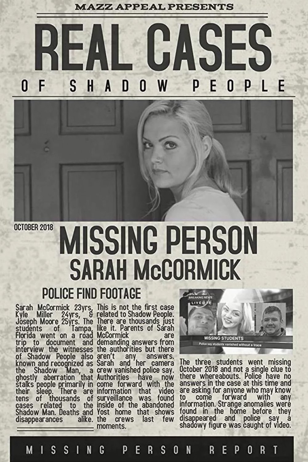 Poster to the movie "Real Cases of Shadow People: The Sarah McCormick Story" #966968HD Ready 1000p