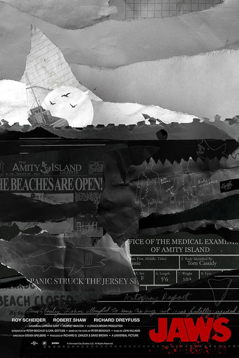 Lots of posters, covers and wallpapers for the movie "Jaws"