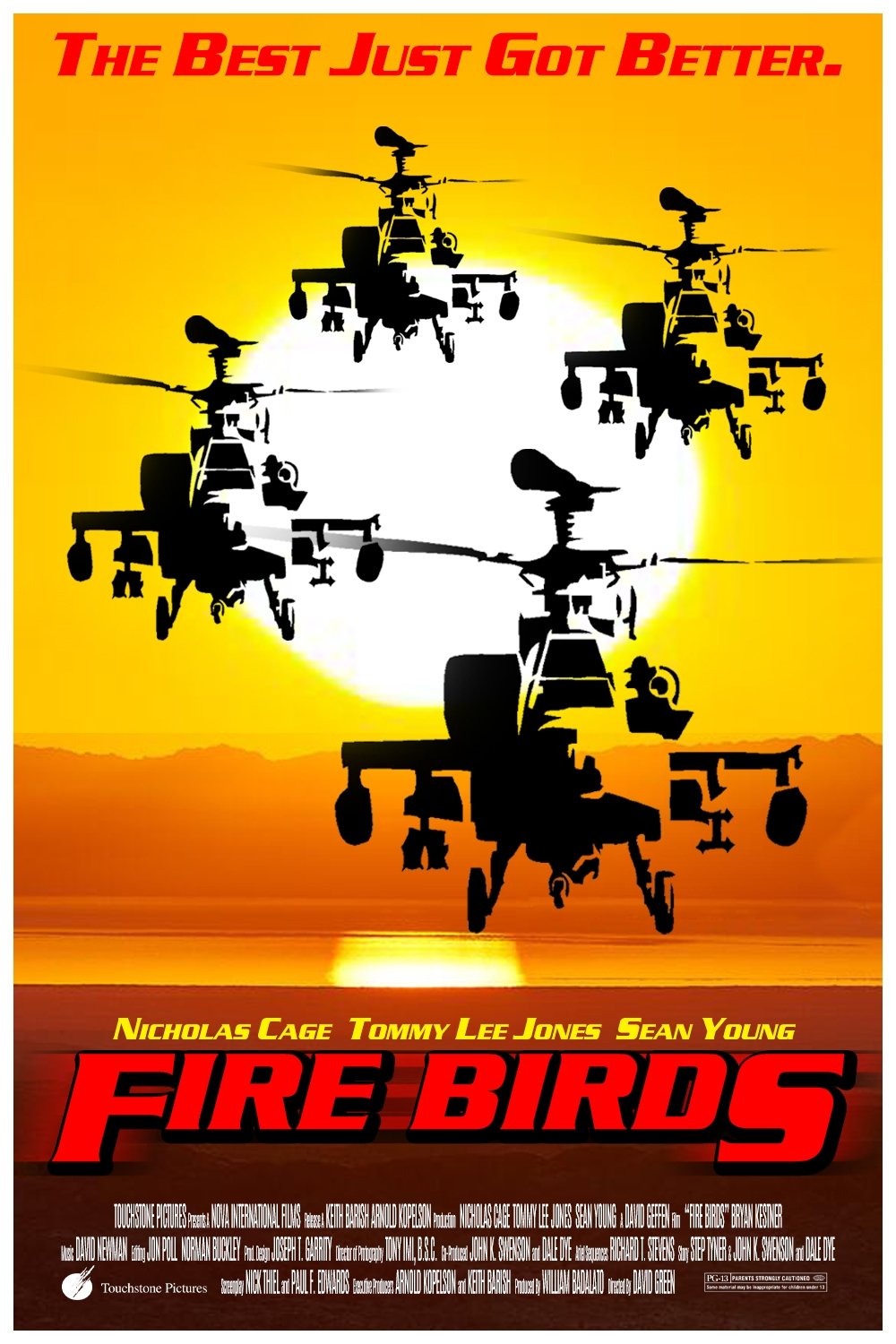 Lots of posters, covers and wallpapers for the movie "Fire Birds"