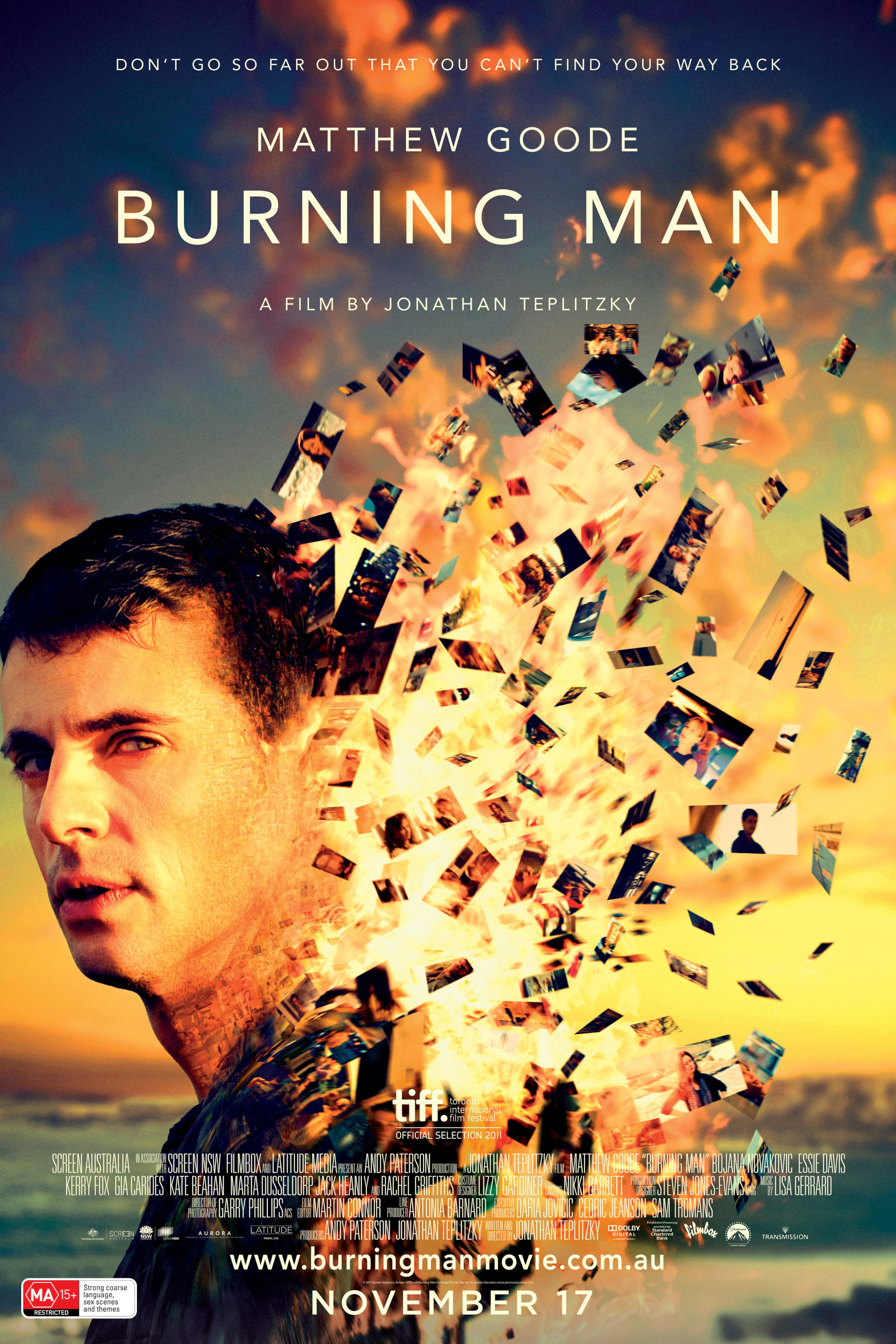 Lots of posters, covers and wallpapers for the movie "Burning Man"