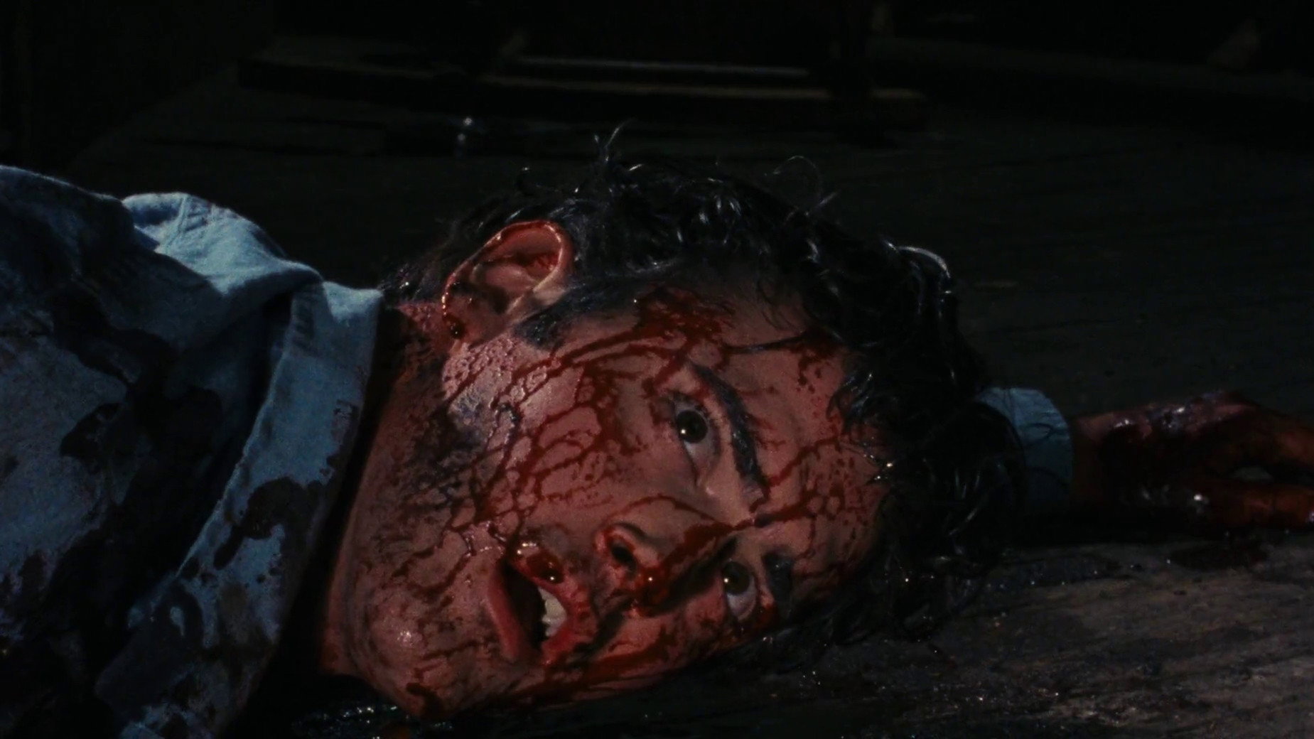 • During the scene where the possessed Linda tries to stab Ash with a knife, actress Betsy Baker literally played blindfolded – the 'demonic' thick white contact lenses affected her vision.
