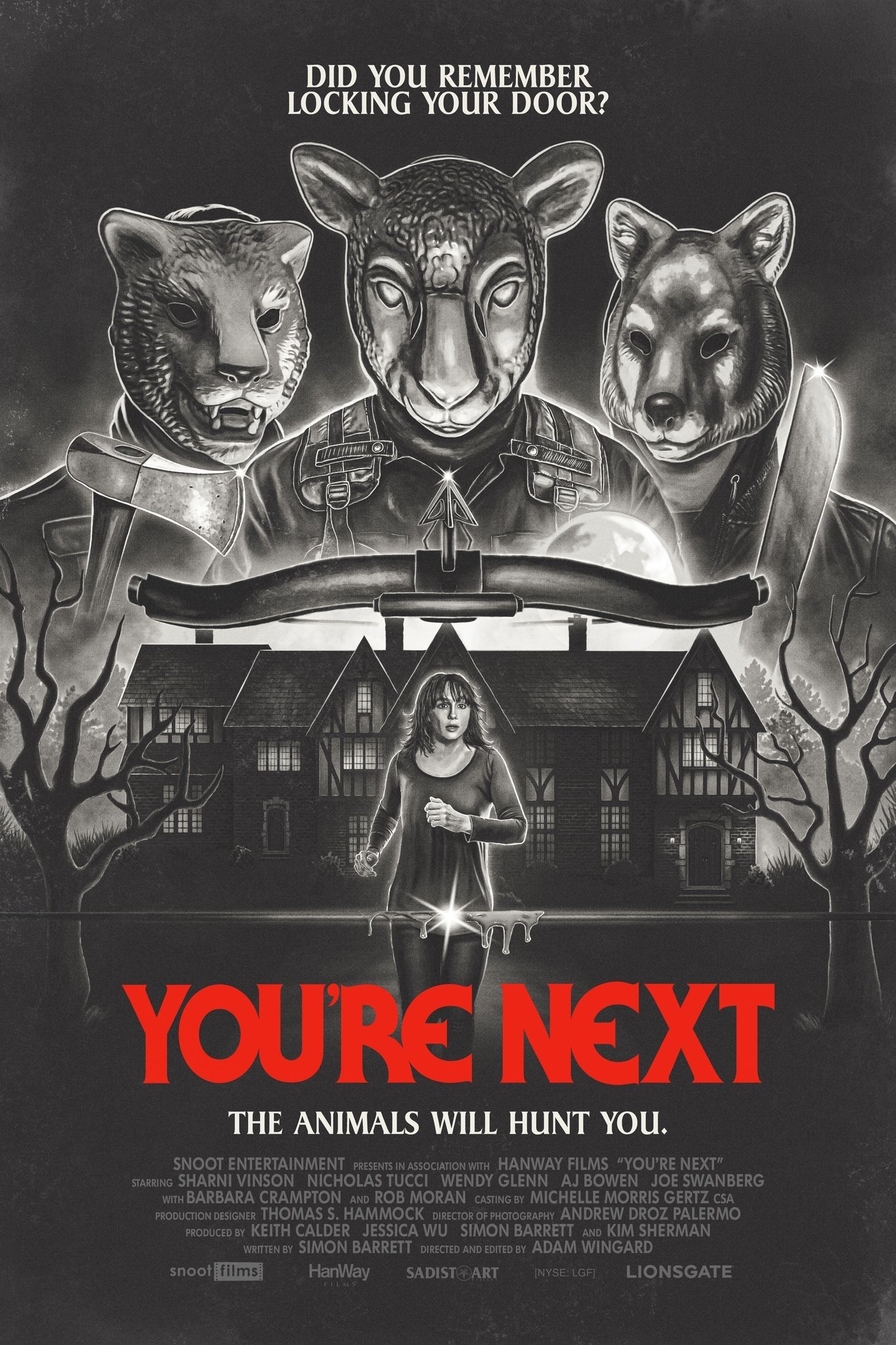 Lots of posters, covers and wallpapers for the movie "You're Next"